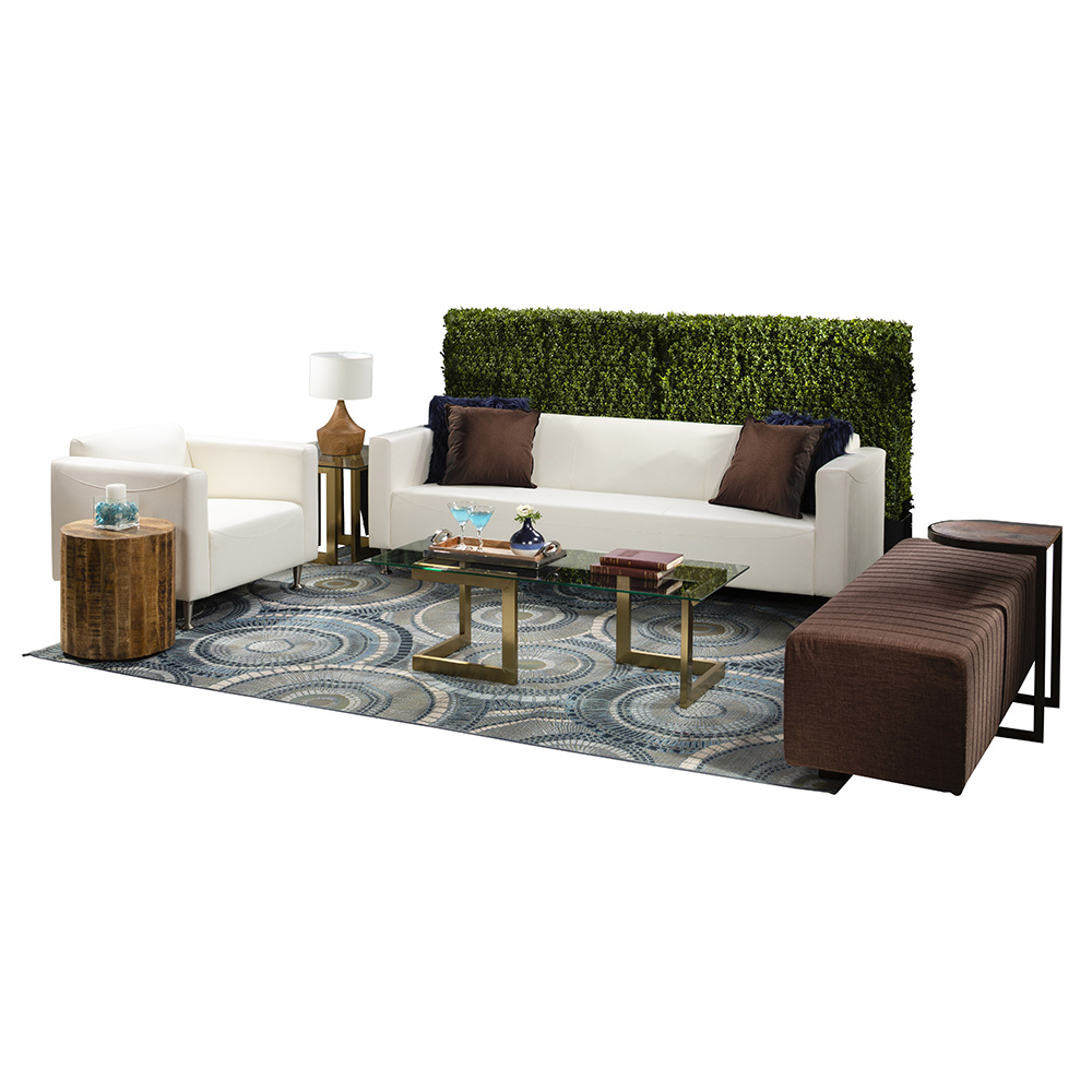 Versatile, small, half-round "C" shaped table with bronze frame and wood laminate top fits over most seating. View More Details |