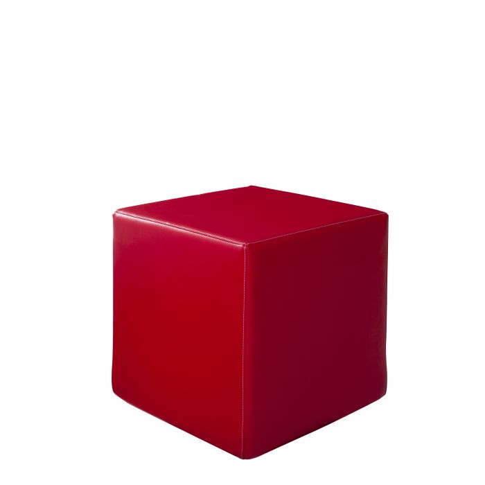 This indoor/outdoor bright red vinyl ottoman cube adds a pop of color to any design. Available in 14 additional colors.