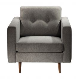 Features light gray soft fabric and angled faux wood legs for mid-century modern environments. View More Details |